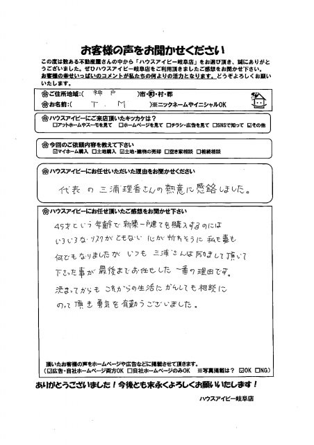 本当に仲の良いご家族のTM様。 お家の購入にいつも前向きで真剣にご検討して頂きました。 お引越しの時にお邪魔させて頂いたら、娘さんからあたたかいお手紙まで頂き、感激です。 TM様のお家購入のお手伝いが出来て、私たちも幸せです。 これからも末永くよろしくお願いします! ハウスアイビー岐阜店 担当/三浦